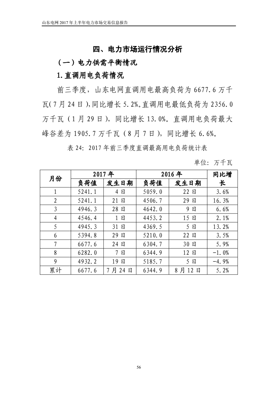 山東電網(wǎng)2017年三季度電力市場交易信息報告