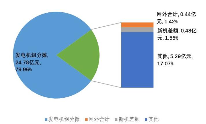 從電力輔助服務(wù)補(bǔ)償費(fèi)用來源來看,主要來自發(fā)電機(jī)組分?jǐn)傎M(fèi)用,合計 24.78 億元,占比為 79.96%。其他還有,跨省區(qū)(網(wǎng)外)輔助服務(wù)補(bǔ)償分?jǐn)傎M(fèi)用合計 0.44 億元,新機(jī)差額資金 0.48億元,考核等其他費(fèi)用 5.29 億元,無分?jǐn)倻p免費(fèi)用(見圖 4)