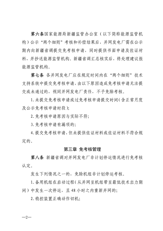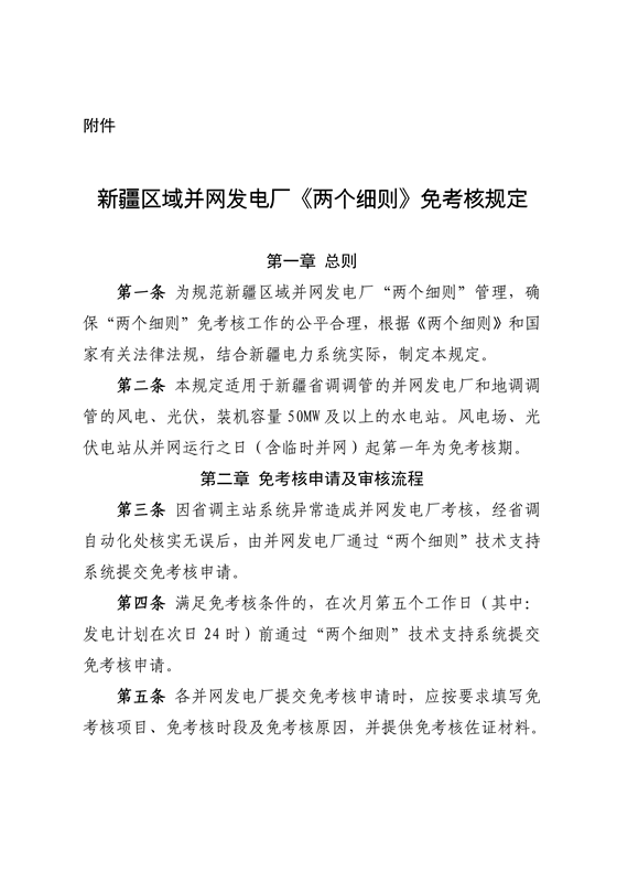 《新疆區(qū)域并網(wǎng)發(fā)電廠《兩個細(xì)則》免考核規(guī)定》全文如下: