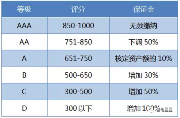 評價越低,保證金繳納越多,甚至翻倍??梢姡垭姽居眯木S護自身信用,是在為自己省大錢啊。