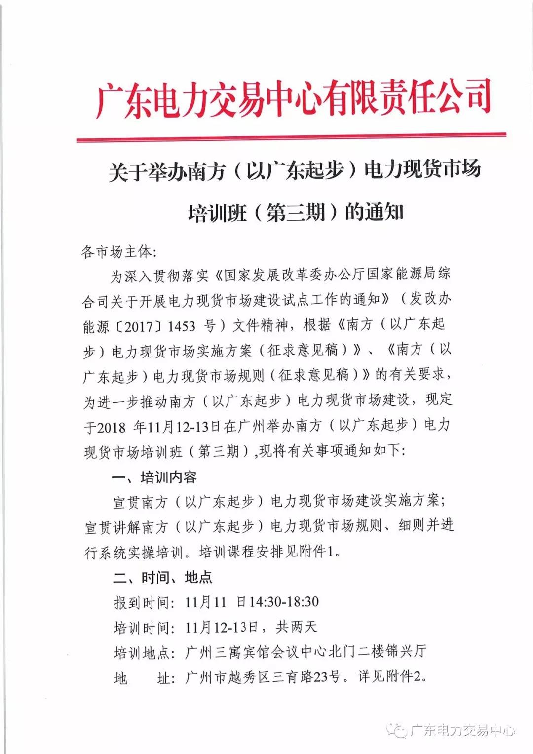 通知 | 關(guān)于舉辦南方(以廣東起步)電力現(xiàn)貨市場(chǎng)培訓(xùn)班(第三期)的通知