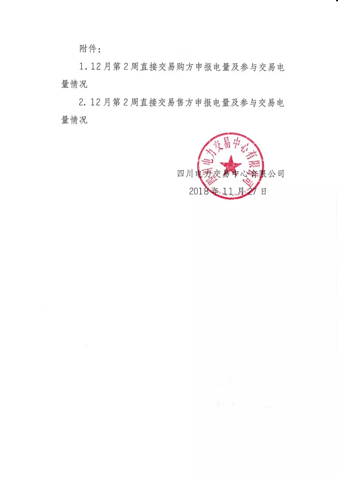 公告 | 四川關(guān)于開展2018年12月第2周直接交易的公告