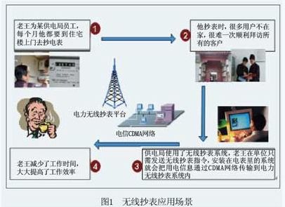 電力無線抄表系統(tǒng)解決方案利用電信CDMA網(wǎng)絡(luò)覆蓋面廣的特點(diǎn),通過無線網(wǎng)絡(luò)的方式將各個(gè)電表所記錄的用電量等數(shù)據(jù)實(shí)時(shí)傳送到電力企業(yè)營業(yè)部門,代替人工抄表,實(shí)現(xiàn)抄表、統(tǒng)計(jì)、監(jiān)控等工作的自動(dòng)化。
