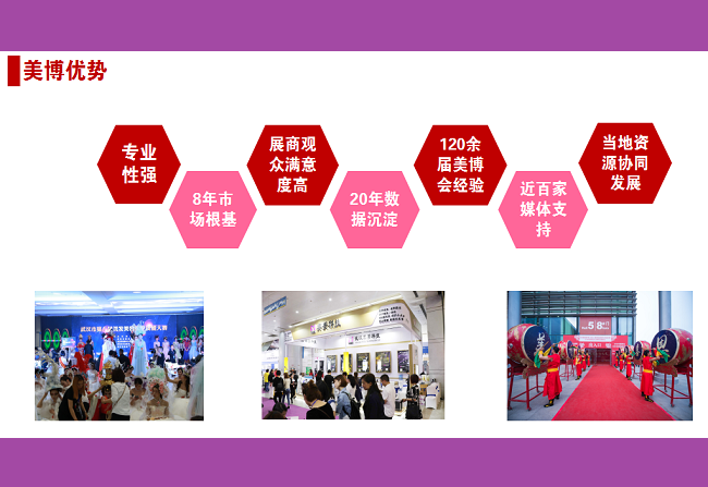 武漢美博會創(chuàng)始于2012年8月,是山東美博國際文化傳播有限公司華中地區(qū)極為重要的戰(zhàn)略布點,經(jīng)歷多年的發(fā)展,武漢美博會已由之前的輻射湖北地區(qū)發(fā)展成為輻射整個華中地區(qū)的美博會。展覽范圍整體涵蓋美容專業(yè)線、洗滌日化線、醫(yī)療美容、養(yǎng)生保健、微電商、女性時尚妝飾及供應(yīng)線品類等,***切入美業(yè)各細(xì)分*域,源源不斷輸出**、高品質(zhì)產(chǎn)品和創(chuàng)新理念,反映智能科技與美業(yè)結(jié)合的無盡可能,也更加方便買家搜羅特色產(chǎn)品