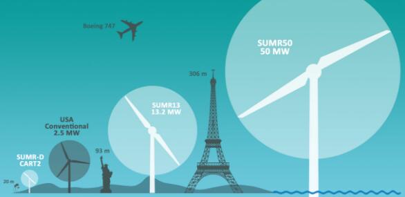 在過去的九年里,美國可再生能源發(fā)電量增長了2倍多,風(fēng)能和太陽能為主要新能源驅(qū)動。企業(yè)如果想更大程度的降低風(fēng)力發(fā)電成本,那么最好的辦法就是建造更大的渦輪機。目前市場上見到的渦輪機大多數(shù)都是標準的70米風(fēng)電塔,葉片長度約50米的樣子。為了追求更低的清潔能源發(fā)電成本,弗吉尼亞大學(xué)研究人員領(lǐng)導(dǎo)的6個機構(gòu)組成的聯(lián)盟正在設(shè)計全球最大的風(fēng)力渦輪機,高度為500米,比帝國大廈還高50多米。