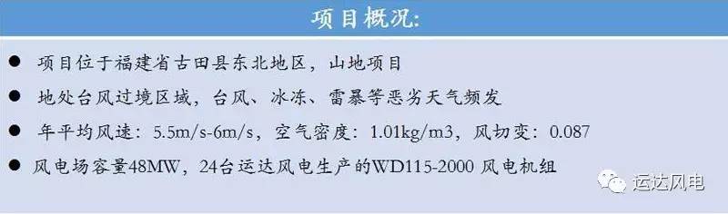 中電建古田泮洋風(fēng)電場作為山地低風(fēng)速項目的典型代表,年平均風(fēng)速5.5m/s-6m/s,臺風(fēng)、炎熱、冰凍、雷電等災(zāi)害性氣象頻發(fā)。
