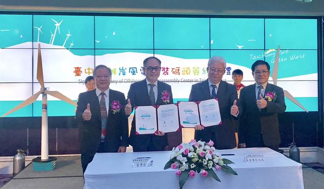 臺(tái)電今與臺(tái)中港務(wù)局簽約,要在臺(tái)中港建置東南亞最大離岸風(fēng)機(jī)組裝碼頭。(圖/臺(tái)電提供)