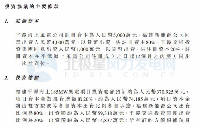 項(xiàng)目資本金福建新能源公司出資比例為80%,出資額約59,348萬(wàn)元,平潭交通投資集團(tuán)出資比例為20%,出資額約14,837萬(wàn)元。