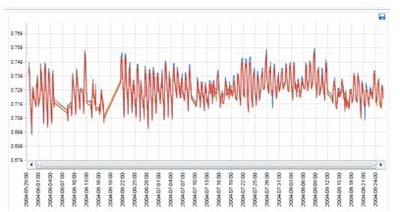 雷電沖擊等偶然影響,將會(huì)產(chǎn)生偶發(fā)的異常監(jiān)測(cè)點(diǎn)。這些異常值的存在將歪曲分析結(jié)果。可通過(guò)目視檢查或?qū)⒋笥?s的數(shù)據(jù)剔除,或利用53H算法進(jìn)行平滑估計(jì)降低異常數(shù)據(jù)的影響。通常對(duì)于運(yùn)行中的同類型設(shè)備,由于受到外部因素的影響也基本相同,因此當(dāng)在線監(jiān)測(cè)時(shí),也可測(cè)取同一參數(shù)的相對(duì)比較值及其隨時(shí)間的變化趨勢(shì),這往往有利于排除干擾而及時(shí)發(fā)現(xiàn)缺陷,可采用相間差值法消除電網(wǎng)異常工況或共性干擾的影響。