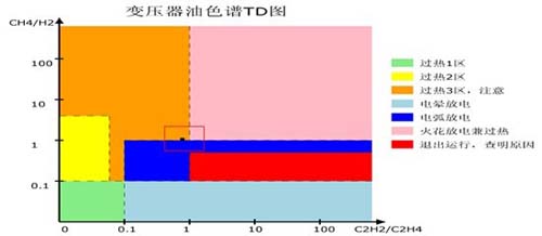 a) 變壓器油色譜診斷分析方法有:越限值、趨勢(shì)預(yù)測(cè)、三比值法、大衛(wèi)三角形法、TD圖法、特征氣體法、伴生增長(zhǎng)、油中溶解氣體增長(zhǎng)率注意值、對(duì)一氧化碳和二氧化碳的判斷(固體絕緣判斷)。