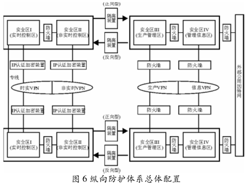 界的安全防護,保證數(shù)據(jù)傳輸?shù)目煽啃院蛯崟r性??v向防護體系總體配置如圖6所示。