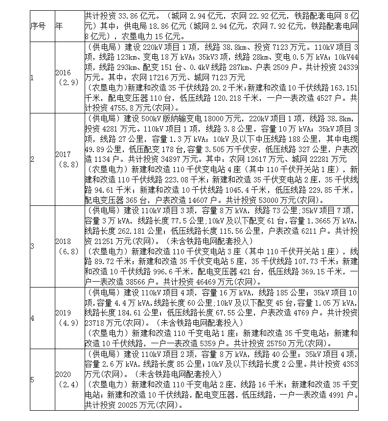 西雙版納州2016-2020年度電網建設項目表