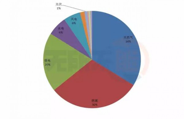 圖:2016年美國不同技術(shù)發(fā)電量占比