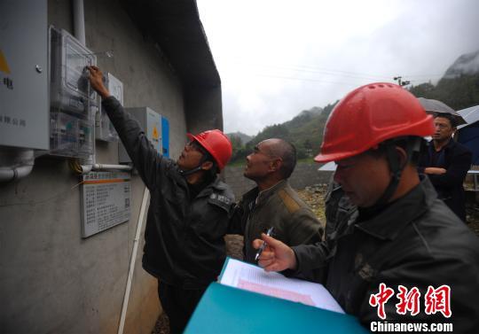 圖為電力工人正在為村民檢查電表和線路?!≈芤?攝