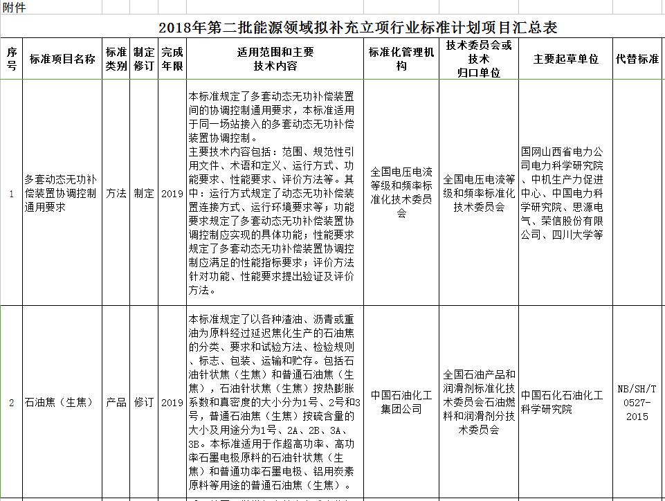 附件:2018年第二批能源領(lǐng)域擬補充立項行業(yè)標準計劃項目匯總表