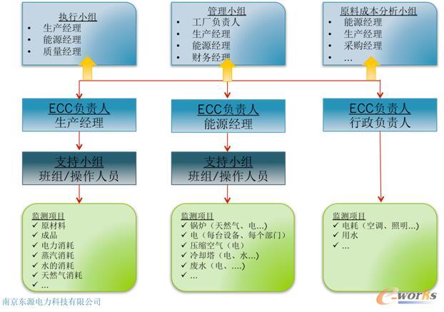 如上圖所示,對能源管理的責任應該分散到ECC層級,如果一個部門內(nèi)不止一個ECC或一個班組,一線管理人員必須對他們自己的小部門或班組的能效負責。