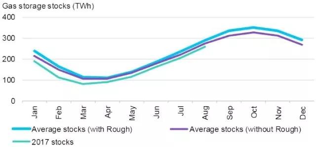 首先,荷蘭繼續(xù)執(zhí)行的格羅寧根氣田減產(chǎn)計(jì)劃將削減其冬季的天然氣供應(yīng);其次,英國的Rough氣庫的離開留下了高達(dá)33TWh的電力缺口(相當(dāng)于英國冬季需求的10%);此外,即使算上Rough氣庫,歐洲的天然氣儲備也難以擺脫去年冬季糟糕狀況的拖累。