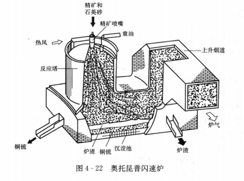 銅熔煉應(yīng)采用先進(jìn)的富氧閃速熔煉池熔煉工藝,替代反射爐、鼓風(fēng)爐和電弧爐等傳統(tǒng)工藝,提高熔煉強(qiáng)度。閃速爐煉銅的生產(chǎn)量占世界銅總產(chǎn)量的一半,已成為當(dāng)今銅冶金所采用最主要的熔煉技術(shù),被普遍認(rèn)為是標(biāo)準(zhǔn)的清潔煉銅工藝。其優(yōu)點(diǎn)在于:熔煉強(qiáng)度高,能量消耗不足傳統(tǒng)煉銅方法的一半;采用富氧熔煉工藝、高品位銅锍等生產(chǎn)技術(shù),降低了能源消耗,提高生產(chǎn)率;銅锍品位容易控制,便于下一步吹煉。