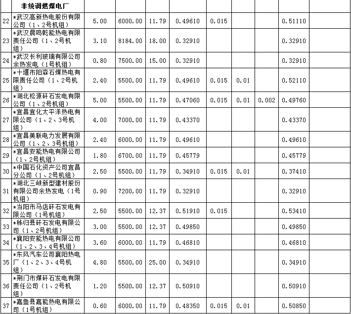 湖北省燃煤發(fā)電企業(yè)上網(wǎng)電價表(2017年7月1日起執(zhí)行)