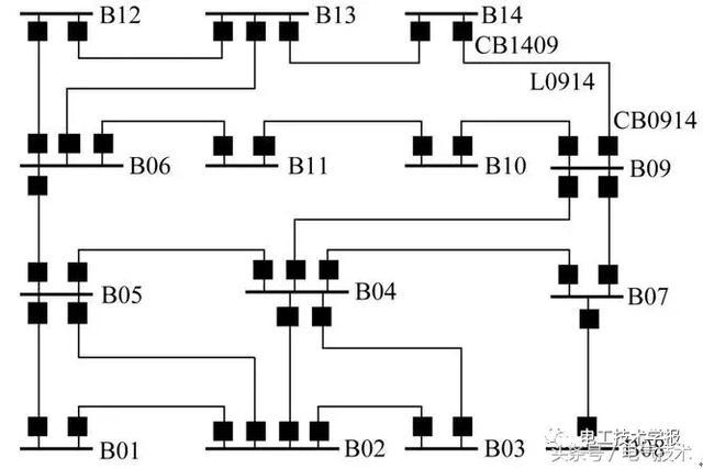 本文提出一種基于拓?fù)鋱D元信息融合的電網(wǎng)故障診斷模型。該模型基于系統(tǒng)拓?fù)浞治鲂纬稍?、保護(hù)和斷路器的拓?fù)潢P(guān)聯(lián)矩陣,以此為基本圖元構(gòu)建信息融合診斷模型,并依據(jù)保護(hù)原理和出口方式建立網(wǎng)絡(luò)拓?fù)溆成湟?guī)則及完整的信息融合推理流程。最后,IEEE 14節(jié)點(diǎn)系統(tǒng)的算例仿真驗(yàn)證了該模型的有效性和適用性。