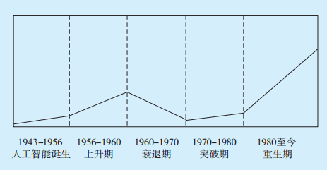 人工智能技術(shù)最早可以追溯至20世紀(jì)40年代,英國數(shù)學(xué)家圖靈提出了人工智能的基礎(chǔ)問題——機器是否可以思考,從而拉開了人工智能技術(shù)的研究序幕。人工智能的發(fā)展脈絡(luò)如圖1所示,經(jīng)歷了的幾個時期的起伏,歷經(jīng)幾代研究者的努力,終于成長為一門重要學(xué)科。20世紀(jì)40年代人工神經(jīng)網(wǎng)絡(luò)模型的誕生,成為了人工智能學(xué)科的基石,在20世紀(jì)50年代人工智能迎來了第一個上升期,得到了飛速的發(fā)展,一系列理論和方法在當(dāng)時被提出。然而由于計算能力的限制和智能化實現(xiàn)程度的不足,在20世紀(jì)60—70年代大部分人工智能項目停擺,人工智能研究進入衰退期。進入20世紀(jì)80年代,專家系統(tǒng)理論的出現(xiàn)突破了利用人工智能解決問題的能力,而機器學(xué)習(xí)算法的出現(xiàn)則大大增強了神經(jīng)網(wǎng)絡(luò)能力,完成了人工神經(jīng)網(wǎng)絡(luò)在理論和應(yīng)用方面的重生。而后,隨著基礎(chǔ)設(shè)施的提升,數(shù)據(jù)處理能力和計算水平也在逐步增強,以及人工智能領(lǐng)域內(nèi)的大部分算法也進行了改進和融合,人工智能技術(shù)進入了一個飛速發(fā)展的時期。而移動互聯(lián)網(wǎng)和大數(shù)據(jù)產(chǎn)業(yè)的繁榮,又進一步推動了人工智能技術(shù)的行業(yè)融合,自動駕駛、生物識別、自然語言處理等應(yīng)用場景都出現(xiàn)了人工智能技術(shù)的身影,人工智能正在深刻地影響著人們生活的各個方面。