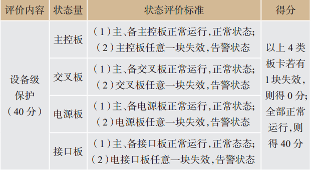 針對(duì)以上4類板卡,提出的設(shè)備級(jí)保護(hù)狀態(tài)評(píng)價(jià)標(biāo)準(zhǔn)及評(píng)分細(xì)則見(jiàn)表2所列。