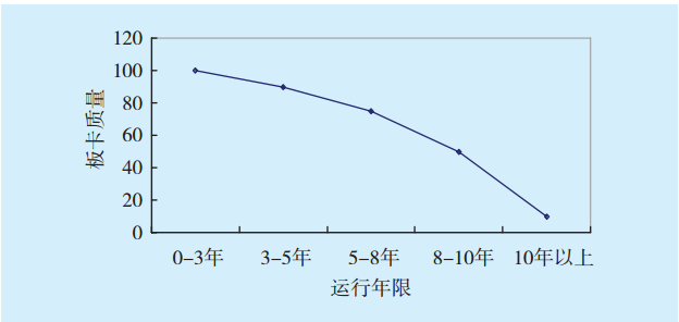圖4 板卡質(zhì)量與運(yùn)行年限關(guān)系Fig.4 The relationship between board quality and operating life