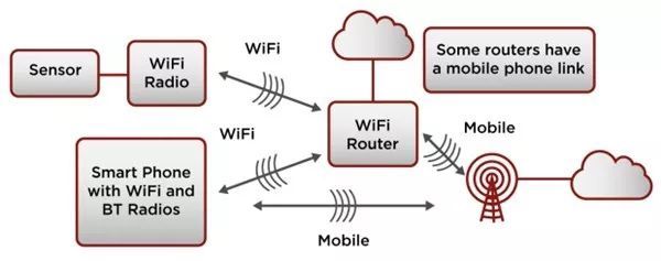 隨著智能手機上Wi-Fi功能的出現(xiàn),能直連路由器的傳感器也誕生了。這就意味著只要在路由器信號覆蓋范圍之內(nèi),傳感器就可以隨時連接互聯(lián)網(wǎng),省去了連接移動基站的復雜過程。