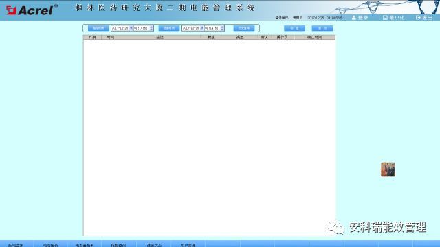 可通過(guò)在抄表時(shí)間選擇框中設(shè)定好抄表時(shí)間,點(diǎn)擊抄表按鈕,在查詢表格中顯示查詢到的配電回路電參量。