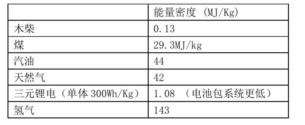 各類能源能量密度約為下表,氫氣表現(xiàn)出了“一騎絕塵”的高能量密度: