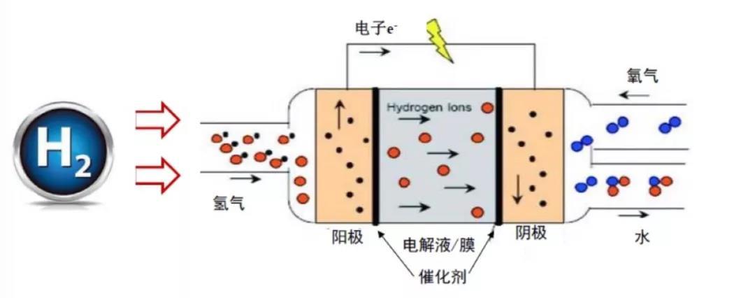 氫分子又小又活潑。它透過質(zhì)子膜時,電子被從分子上剝離,只留下帶正電的氫質(zhì)子通過,氫質(zhì)子被吸引到薄膜另一側(cè)的電極與氧分子結(jié)合。電解質(zhì)薄膜兩側(cè)的電極板將氫氣拆分成氫離子(正電)和電子、將氧氣拆分成氧離子(負(fù)電)和電子,電子在電極板之間形成電流,兩個氫離子和一個氧離子結(jié)合成為水,是反應(yīng)的唯一廢物。