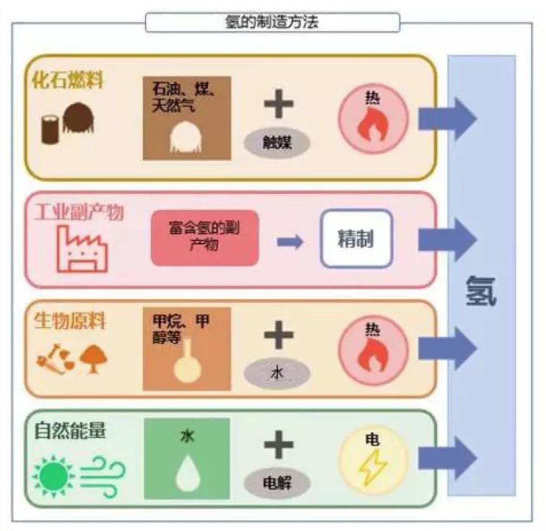 日本看重的不僅是氫能源的高效與清潔,在煤炭和石油時代,人們早已發(fā)現(xiàn)了氫可作為煉制化石能源的副產(chǎn)品,因此氫的制備多種多樣,還可以很好地利用起石油時代的基礎(chǔ)設(shè)施和產(chǎn)業(yè)鏈。