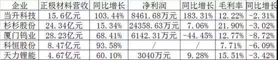 但是在凈利潤方面,除當(dāng)升科技大增以外,其余企業(yè)的凈利增長幅度都比較小,廈門鎢業(yè)甚至出現(xiàn)大幅下滑。而在產(chǎn)品毛利率方面全部則是全面下滑,這也是三元正極材料企業(yè)增收不增利的主要原因。