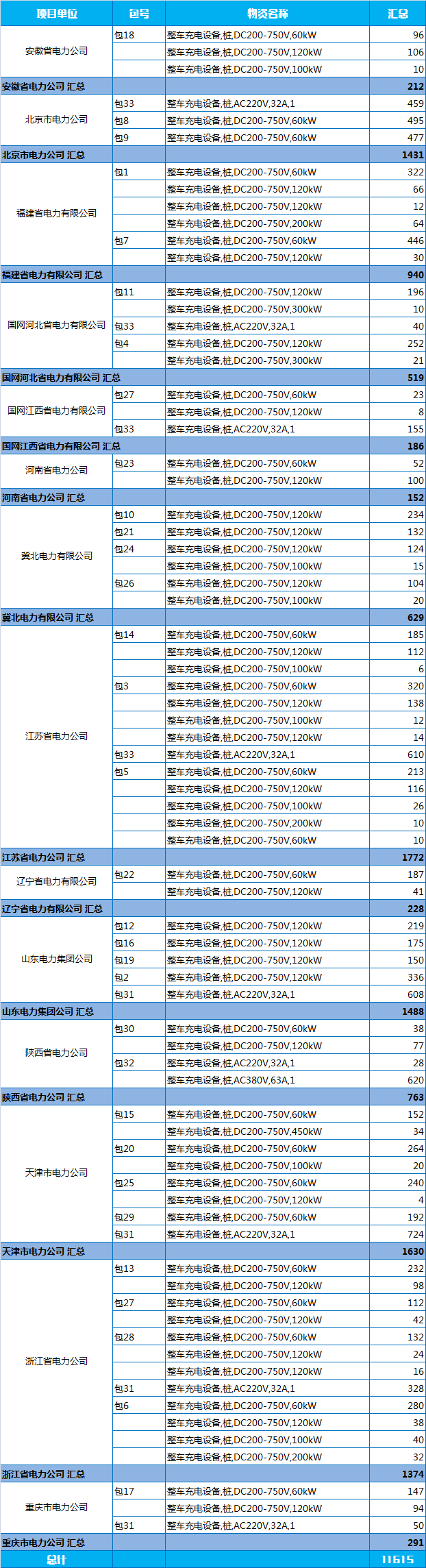 另,值得注意的一點(diǎn)是,此次招標(biāo)中出現(xiàn)了450kW的大功率充電設(shè)備,為天津電力公司招標(biāo),包號(hào)(15)整車充電設(shè)備,樁,DC200-750V,450kW,數(shù)量為34臺(tái)。