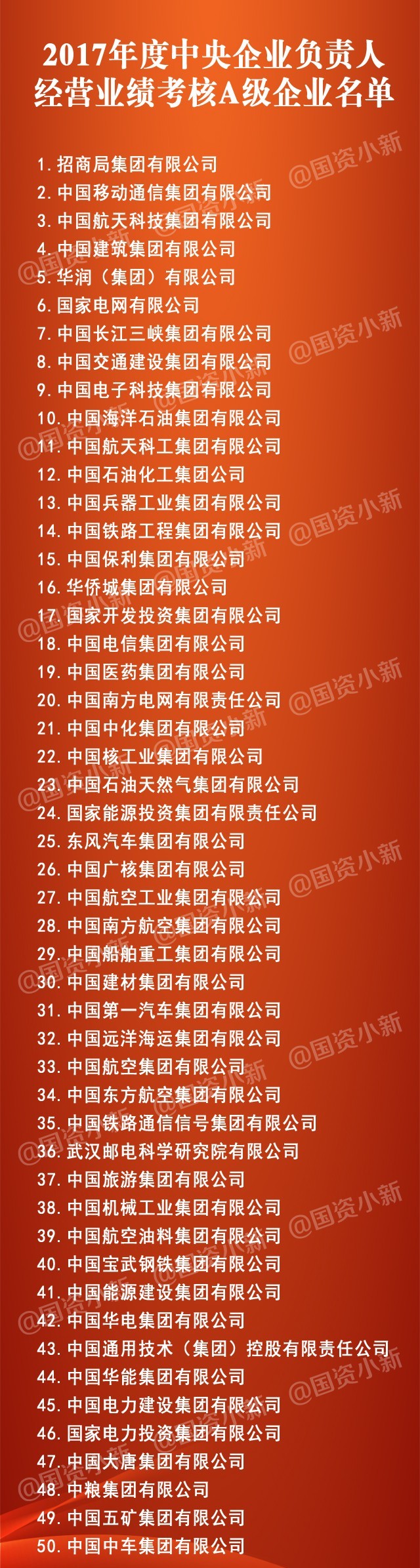 2018年7月17日,國務(wù)院國資委公布2017年度中央企業(yè)負(fù)責(zé)人經(jīng)營業(yè)績考核結(jié)果,50家央企為A級,占比超過一半,比例達(dá)到歷史最高。